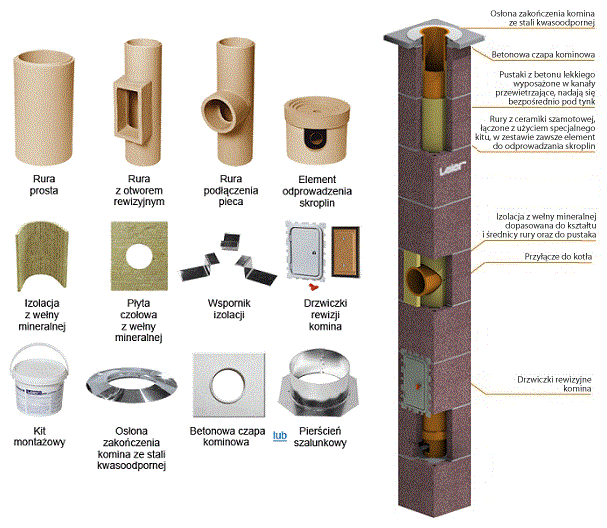 Gwarancja: 30 lat; Producent: Leier; System: Smart; Przeznaczenie: do kominków, do kotłów gazowych, do kotłów na paliwa stałe, do kotłów olejowych, uniwersalne do wszystkich paliw; Rodzaj paliwa: Brykiet, Drewno, Ekogroszek, Gaz ziemny, Miał, Nafta, Olej opałowy, Węgiel; Typ kotła: otwarta komora spalania